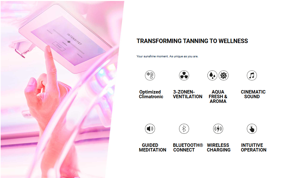Combines the skin-caring power of red Beauty Light with the calming effect of green Nature Light. For a beautiful, natural tan and a sense of well-being.